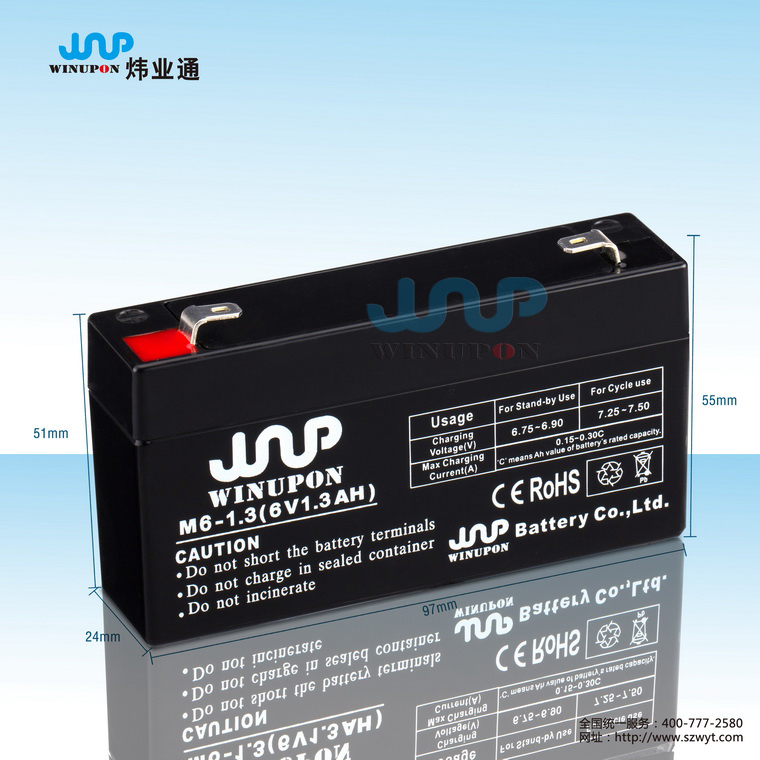 規格型號 6V1.3AH 外形尺寸(±2mm) 約重0.30KG