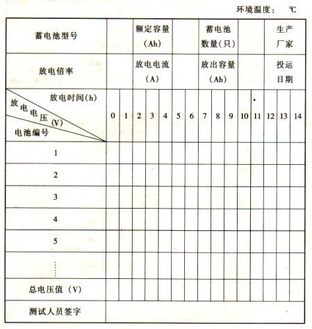 2)放電時(shí)應(yīng)每小時(shí)對(duì)電池測量一次。
